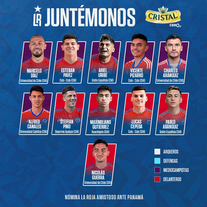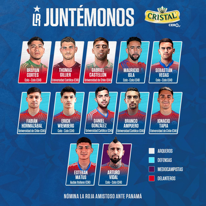 Para este partido, solo se citó a jugadores del medio local. En la lista predominan los futbolistas de Colo Colo. Son ocho los futbolistas de Colo Colo. Destaca la presencia de Arturo Vidal, Mauricio Isla y Sebastián Vegas. El central, quien acaba de llegar al "Cacique", por primera vez es llamado por el "Tigre".