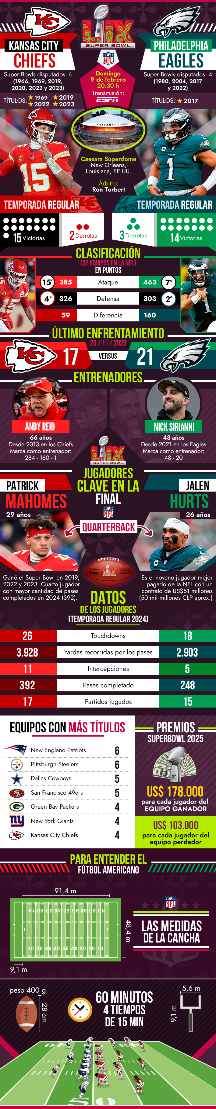 Chiefs vs. Eagles: Todo lo que debes saber sobre su enfrentamiento por el Super Bowl 2025