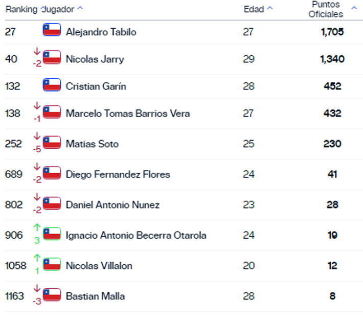 Nicolás Jarry experimentó una baja en el listado.