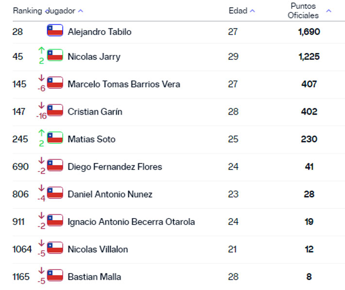 El principal tenista chileno sigue siendo Alejandro Tabilo, quien está 28° en el escalafón mundial. Esta semana defiende la final del Chile Open en San Carlos de Apoquindo.