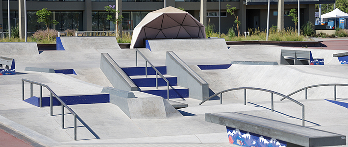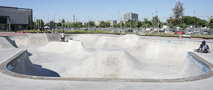 Una pista para practicar skateboarding y una para BMX freestyle.