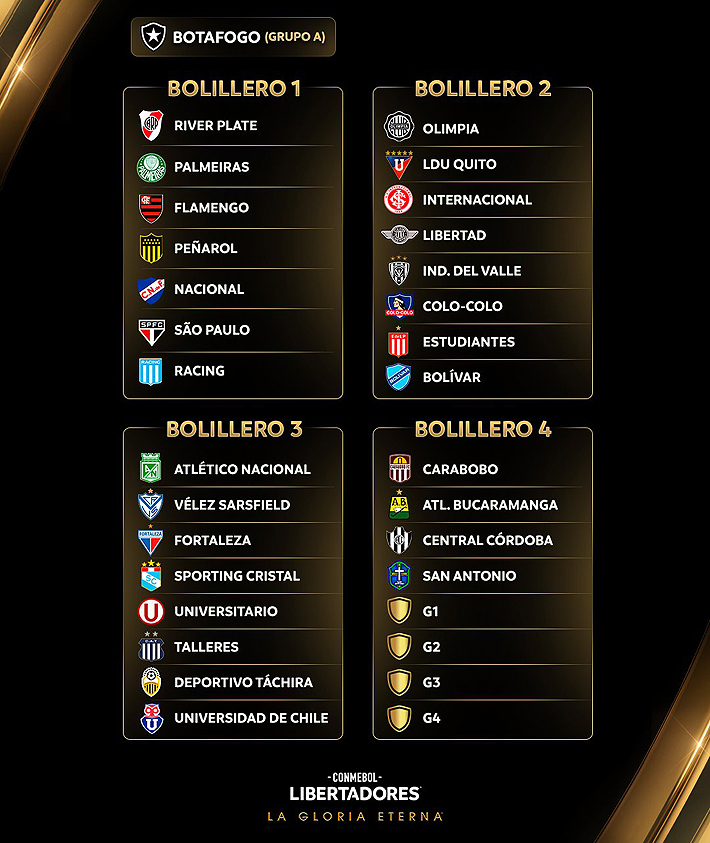 Hay que consignar que Botafogo, por ser el último campeón, ya está en el Grupo A del certamen continental.