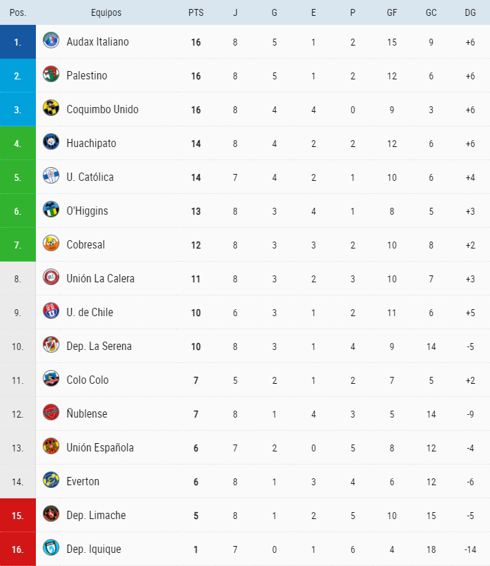 fecha 8 del Campeonato Nacional y se mueve la tabla de posiciones.