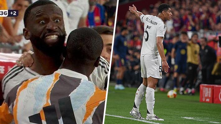 Antonio Rudiger fue expulsado en el minuto 120 por lanzarle un objeto sin alcanzarle, el inglés Jude Bellingham por mostrar una "actitud agresiva" y Lucas Vázquez por entrar en el terreno de juego a protestar.