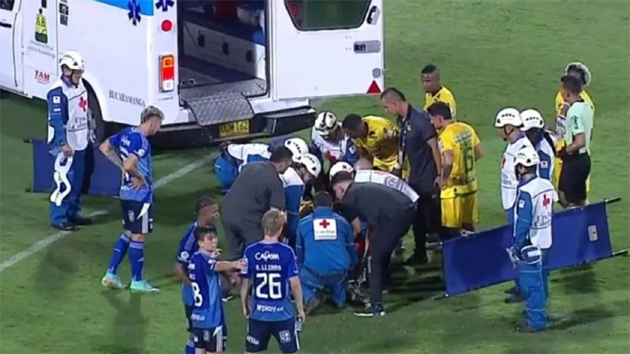 Luciano Pons encendió las alarmas en el fútbol colombiano. El delantero del Bucaramanga -rival de Colo Colo en la Copa Libertadores- tuvo que abandonar el duelo ante Millonarios en ambulancia.