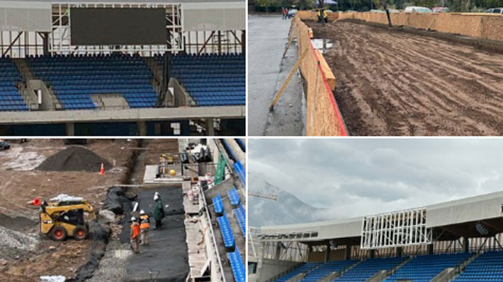 "Los tableros marcadores avanzan en su armado. Trabajos para las mejoras de los estacionamientos exteriores del recinto para personas de movilidad reducida. En la futura cancha se trabaja para implementar el sistema de drenaje. Las luminarias deportivas ya son parte de las cubiertas", detalló.