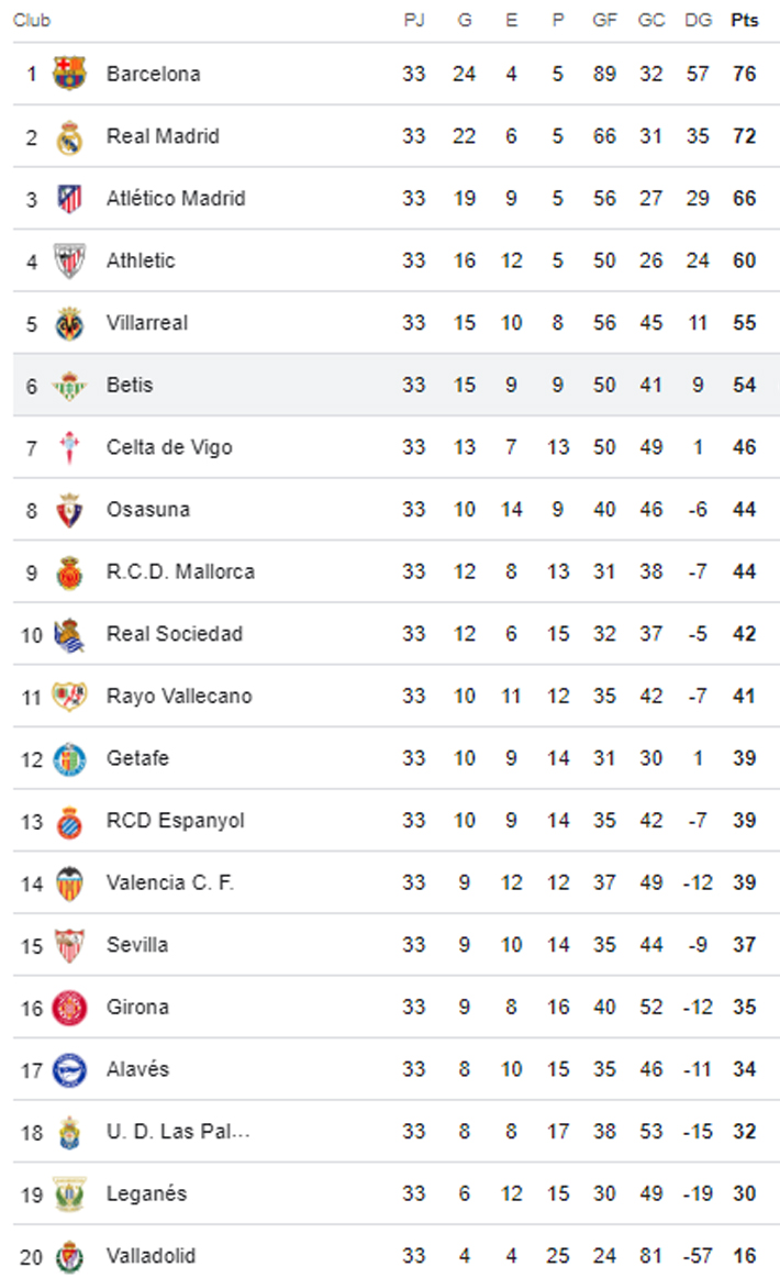 Sin embargo, los verdiblancos de igual forma podría clasificar siendo sexto, aunque hay menos chances. Si el Athletic ganara la Europa League y se quedará fuera de los cuatro primeros clasificados de la Liga española, el sexto va a la Champions.
