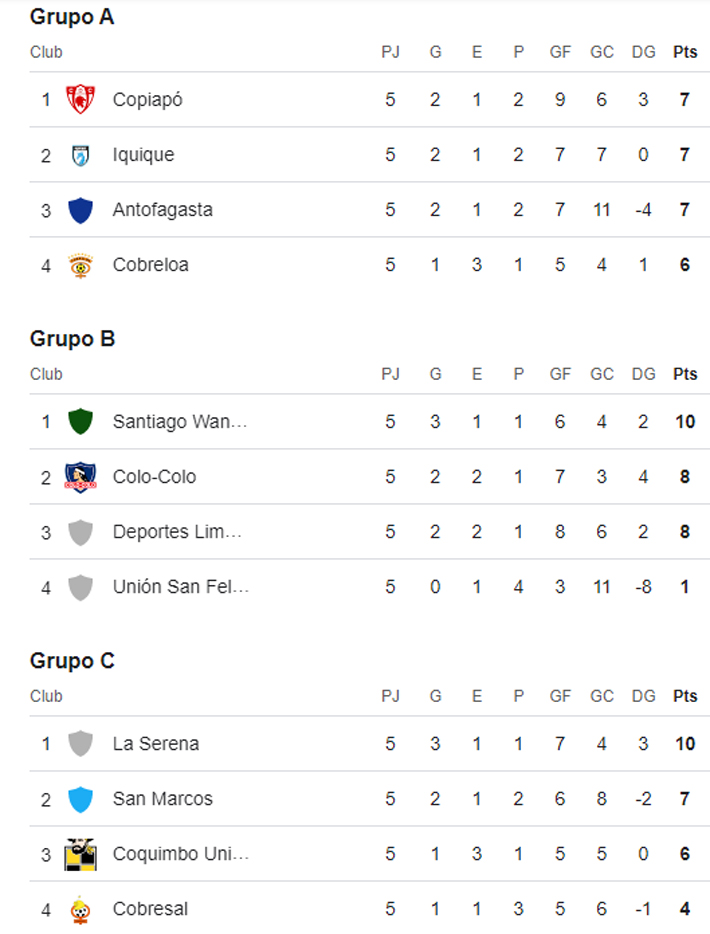 Santiago Wanderers (Grupo B), La Serena (Grupo C), La Calera (Grupo D), Audax (Grupo E), Huachipato (Grupo F), Universidad de Chile y Magallanes (Grupo G) y Huachipato (Grupo H).