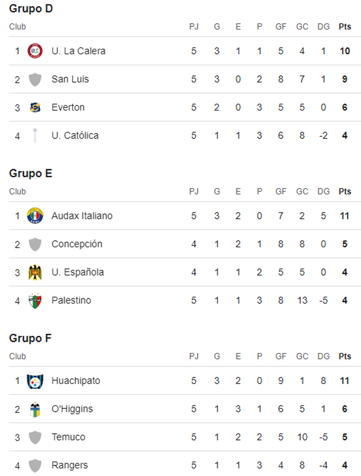 Particular sí es el Grupo E, que tiene a Deportes Concepción y Unión Española con apenas cuatro partidos jugados.