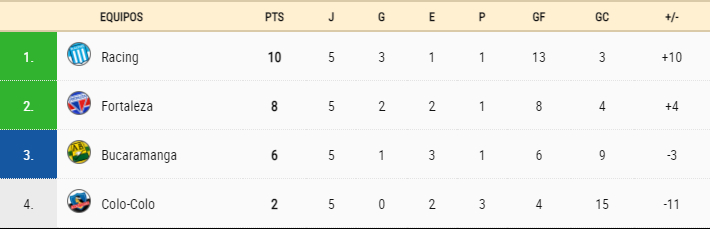 Así está la tabla con el triunfo parcial de Racing sobre Colo Colo
