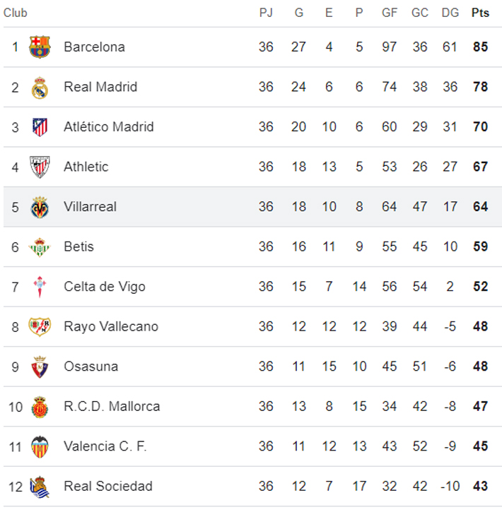 Solo quedan dos fechas de la Liga y el Villarreal que está quinto y agarrando el último boleto para el máximo torneo continental en Europa tiene 64 puntos.