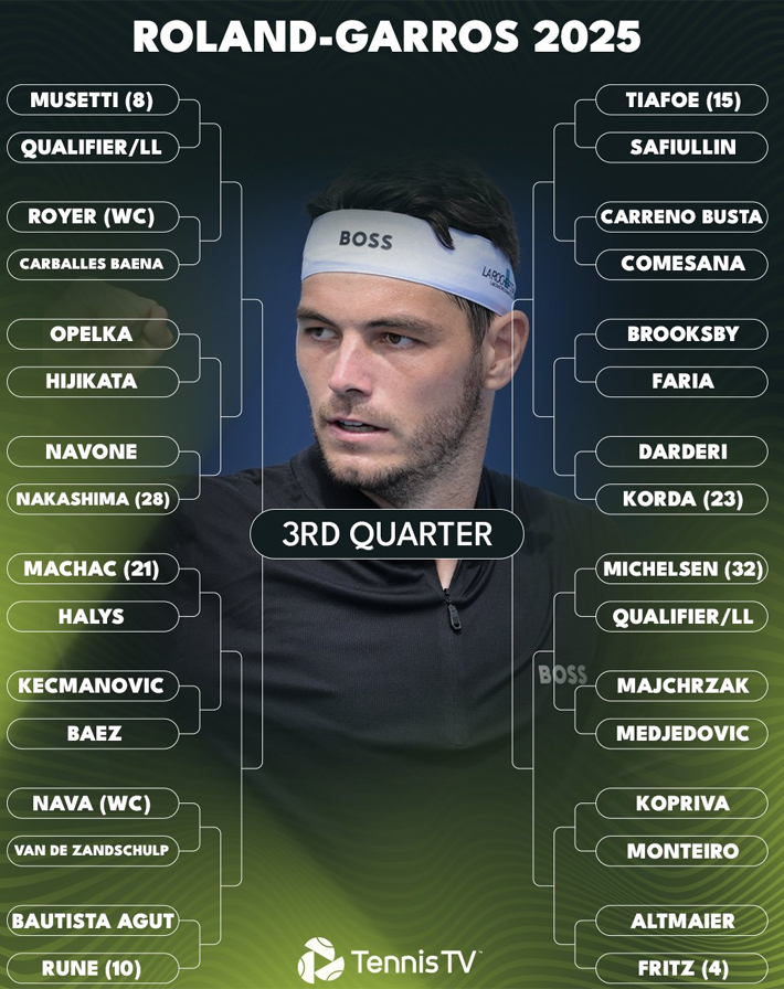 Recordar que Tabilo y Jarry serán los únicos chilenos en el main draw en París, luego de que tanto Tomás Barrios (110°) como Cristian Garin (122°) quedaran eliminados en segunda ronda de qualy.