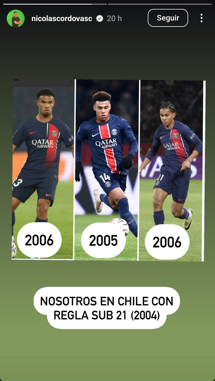 Juntos a las fotos, dejó un mensaje: "Nosotros en Chile con regla Sub 21 (2004)".