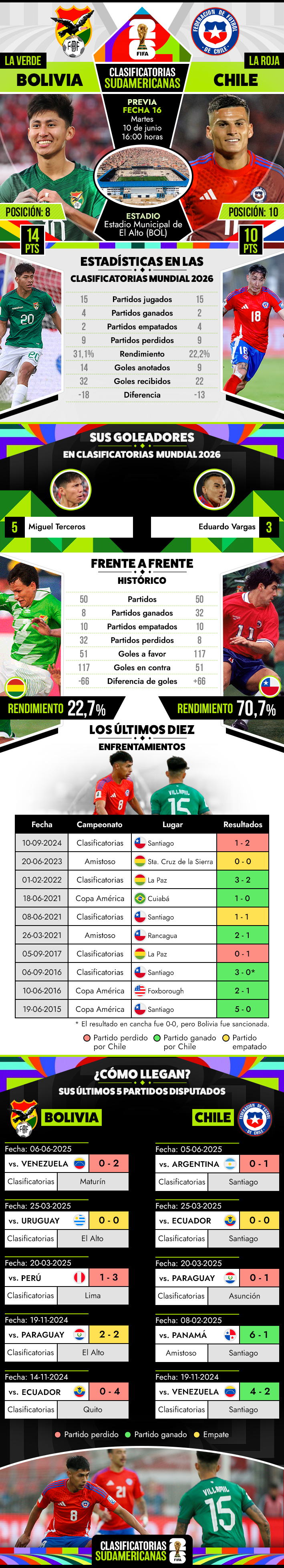 Con la "Roja" al borde de la eliminación: Los números de Bolivia y Chile antes de su duelo en El Alto