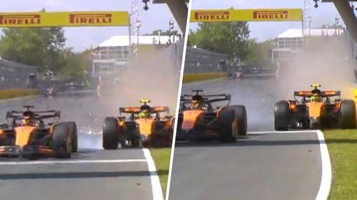En la recta de meta, justo cuando empezaban la 67 de las 70 vueltas, Norris tocó por detrás a su compañero, perdió el control e impactó el muro a su izquierda, quedándose parado y con el monoplaza dañado.