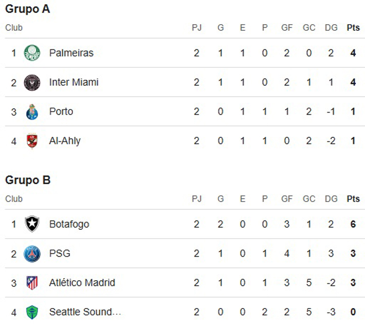 En el Grupo A hubo otro batacazo. El Inter Miami, con un golazo de Lionel Messi, venció 2-1 al Porto. Quedará en la historia. Es el primer triunfo de un equipo de la Concacaf ante uno del "Viejo Continente" por torneos internacionales de la FIFA.