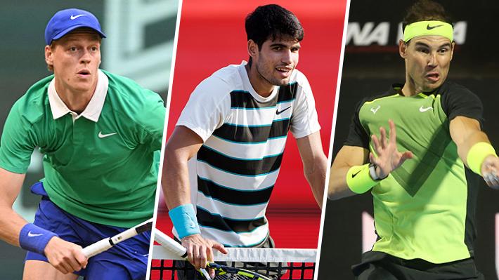 Jannik Sinner, Carlos Alcaraz y Rafael Nadal.
