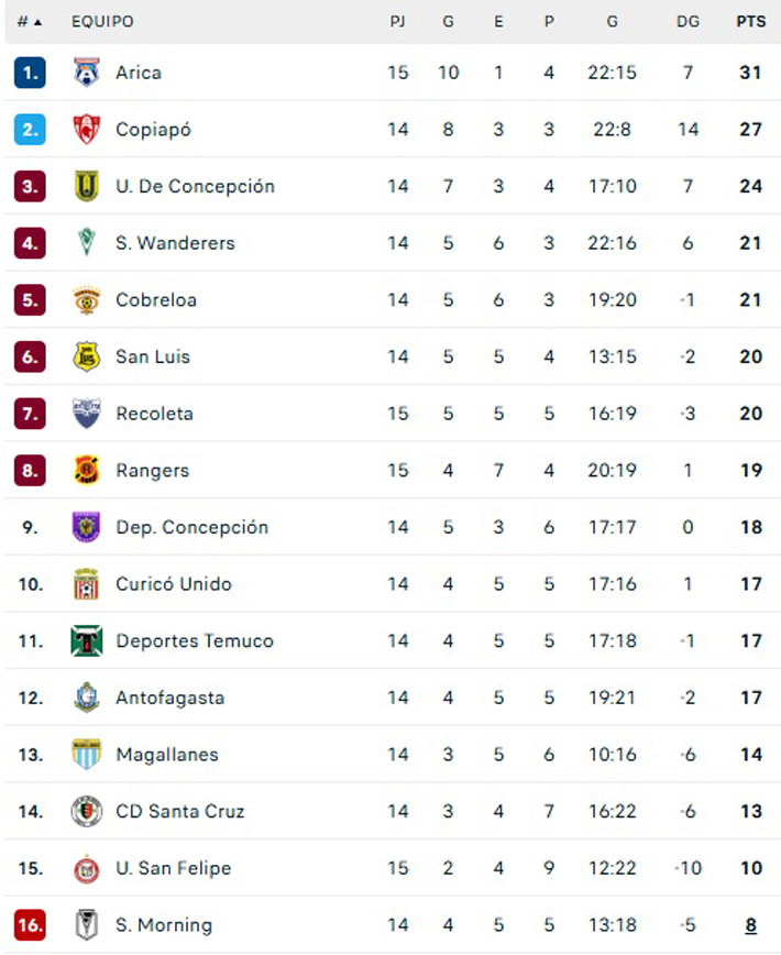 Se cerró la fecha 15 de la Primera B, la última de la primera rueda. Este domingo el sublíder Copiapó sufrió un traspié. Perdió con la Universidad de Concepción.