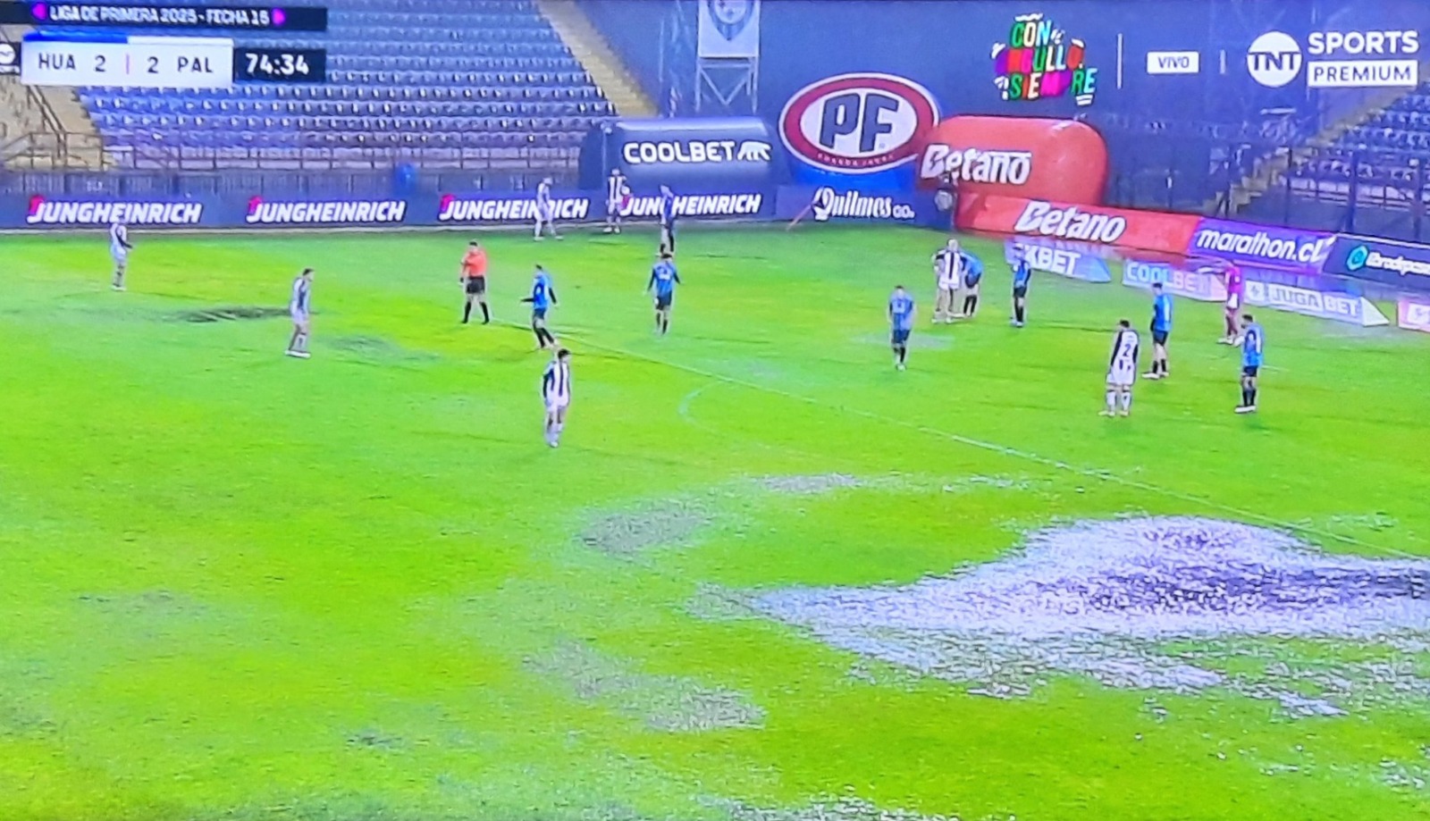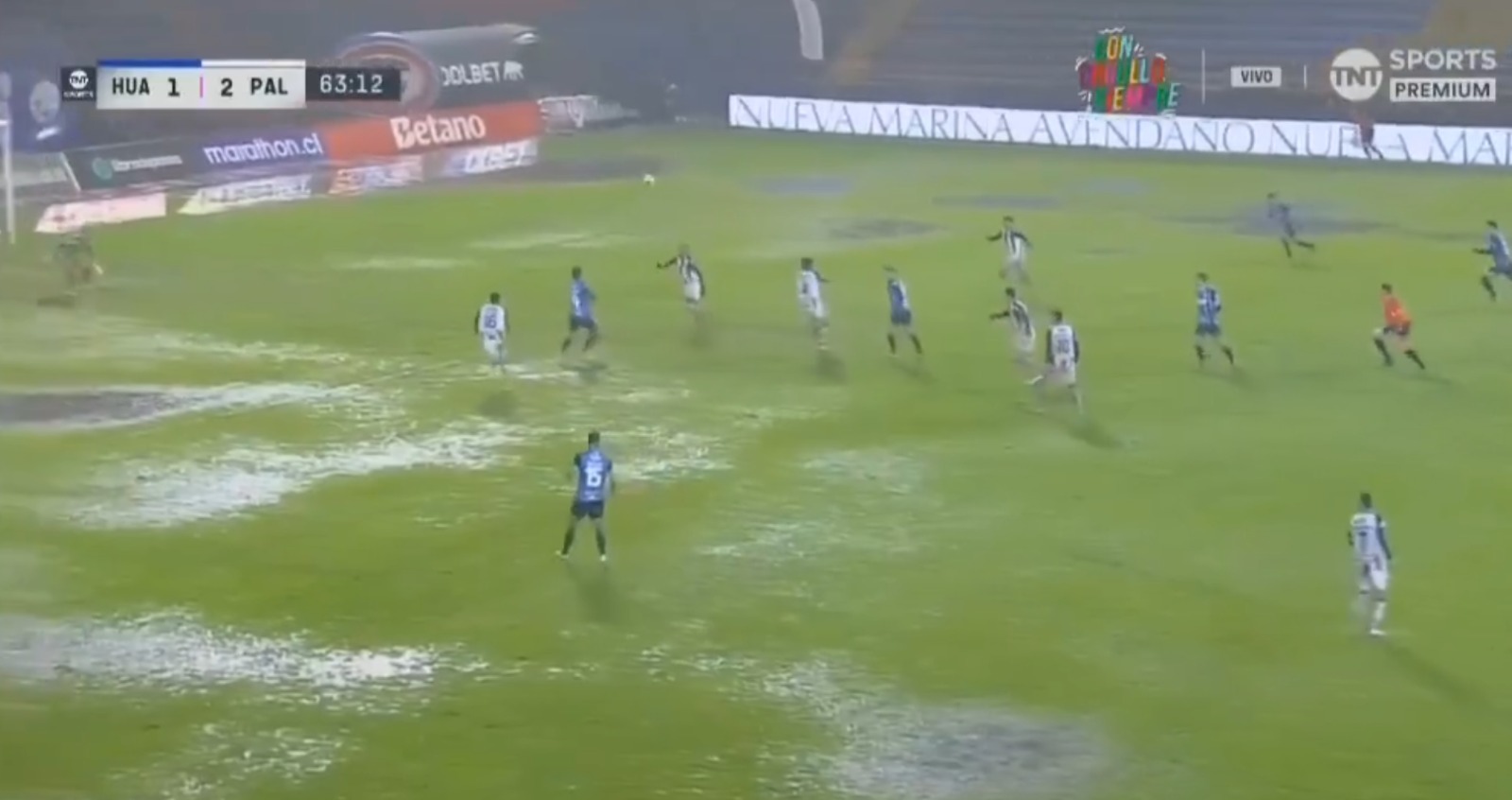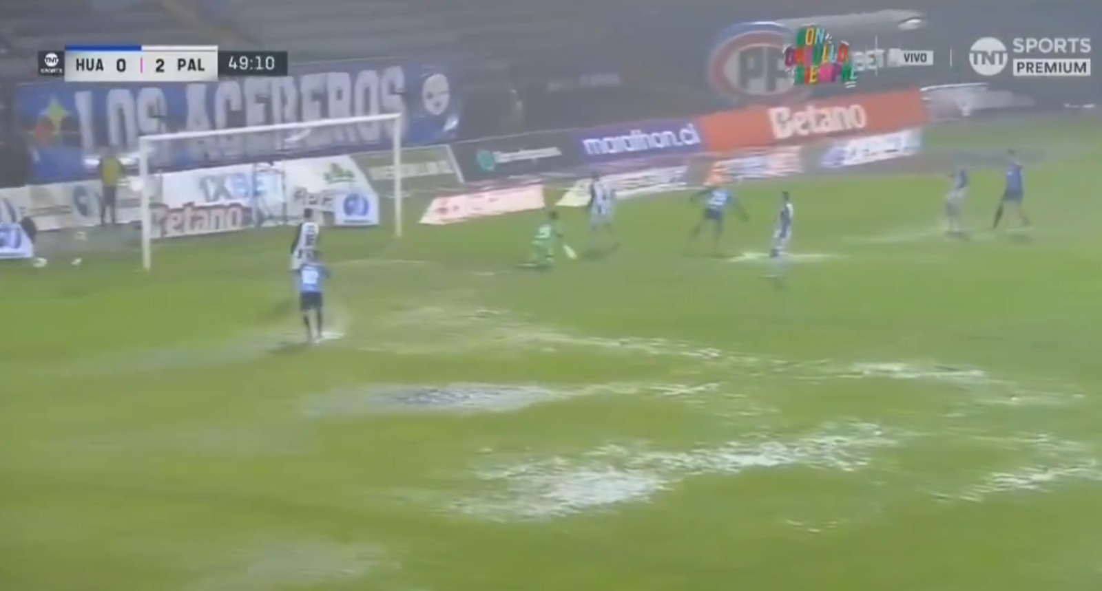 Sin embargo, y pese a la mala condición de la cancha, el juez José Cabero determinó continuar el partido hasta su término con el empate 2-2.