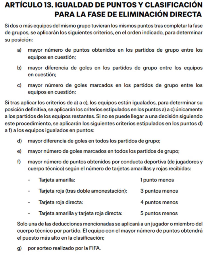 Los criteros de desempate en caso de igualdad de puntaje entre dos equipos:
