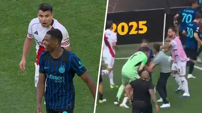 El trasandino campeón del mundo lo persiguió. Entre varios compañeros a duras penas lograron contenerlo, le tuvieron que hacer una especie de tackle. Hasta Cristian Chivu, DT del Inter, lo fue a tratar de parar.