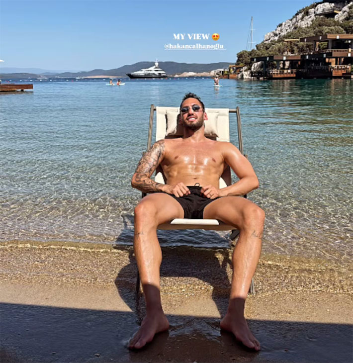 El mediocampista viajó a su país y empezó sus vacaciones familiares. En las últimas horas, justo cuando el Inter se preparaba para su partido de octavos de final ante Fluminense, su pareja, Sinem, subió una serie de fotos y videos desde la playa.