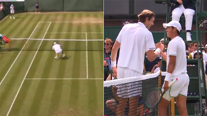 Lo inusual vino en el saludo protocolar en la red. Lejos de estar enojado por la dura derrota, Tien estrechó su mano con el nacional y sonrío, diciéndole algo al criollo, que también respondió con amabilidad y dándole palmadas en la espalda.