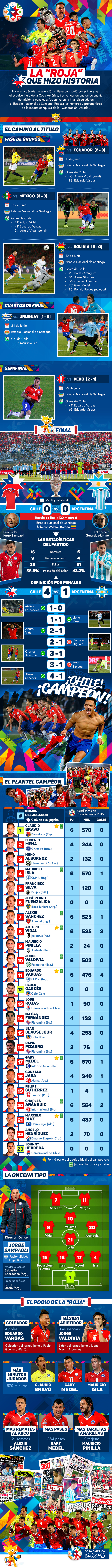 Jugador por jugador y partido a partido: Los números y datos de la histórica conquista de la "Roja" en la Copa América 2015