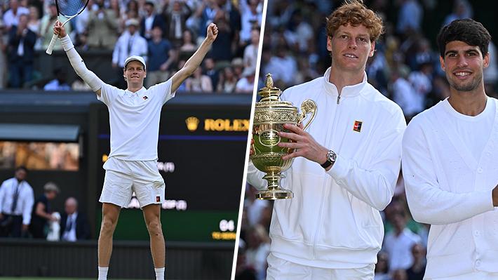 El tenista italiano Jannik Sinner, número uno del mundo, logró su primer título de Wimbledon al derrotar este domingo en la final al español Carlos Alcaraz, ganador de las dos anteriores ediciones.