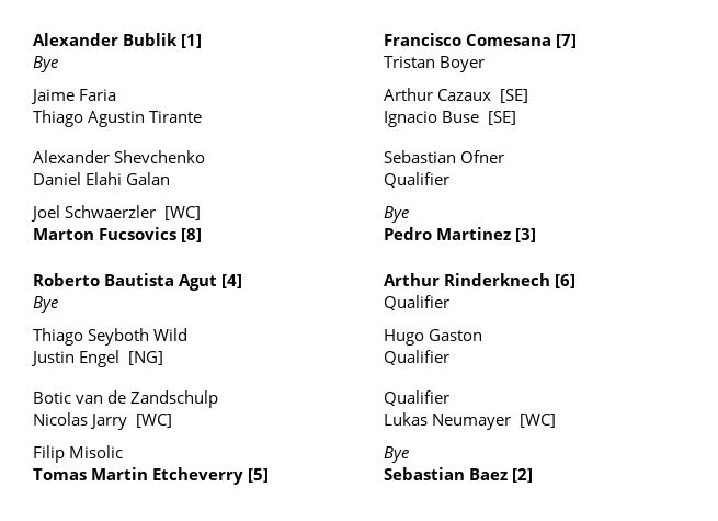 "Gago" hará su debut ante un rival proveniente de la qualy y en caso de ganar, esperará al vencedor del duelo entre el belga Raphael Collignon (84°) y el checo Vit Kopriva (83°), octavo favorito.