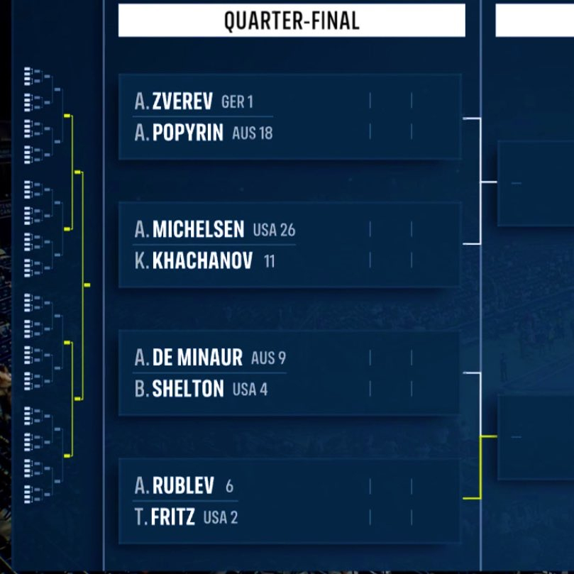 Mañana martes seguirá la acción con dos partidazos: Otro estadounidense, Taylor Fritz (4°), frente al también ruso Andrey Rublev (11°) y el último norteamericano del cuadro, Ben Shelton (7°), contra el australiano Álex de Miñaur (8°).