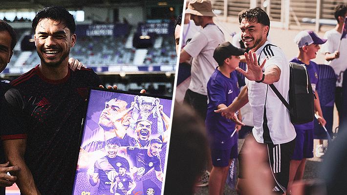 Y después, previo al partido, el seleccionado nacional recibió un obsequio de parte de la directiva gala en homenaje a la trayectoria del nacional en la institución.