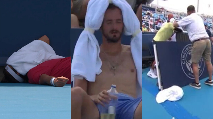 Cameron Norrie terminó vomitando tras perder en segunda ronda, mientras Daniil Medvedev tuvo que meter su cabeza al refrigerador en donde se guardan las aguas en la cancha.