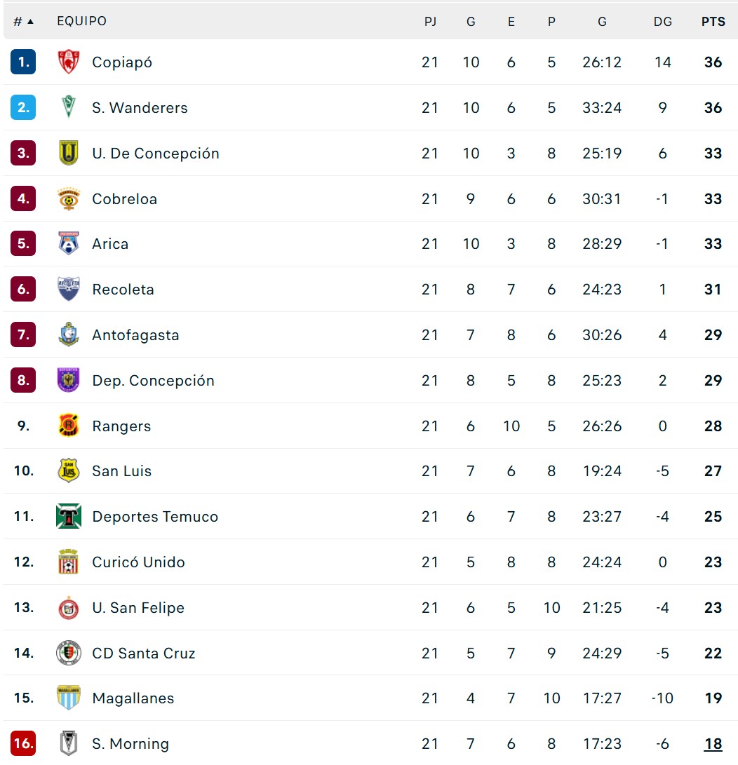 Hay dos punteros: Copiapó y Wanderers con 36. Y hay tres escoltas a tres puntos y uno de ellos es Cobreloa, que venció este domingo a Magallanes.