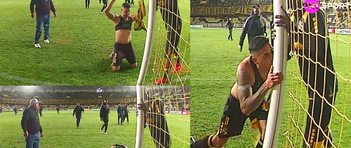 El arquero Diego Sánchez, el defensa Manuel Fernández y el delantero Cecilio Waterman fueron a "besar" el vertical una vez concluido el encuentro en el estadio Francisco Sánchez Rumoroso.
