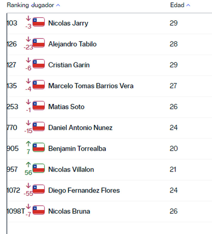 Alejando Tabilo tuvo un brusco descenso y retrocedió 23 posiciones. Ahora figura 126° del orbe. Luego viene Garin que cayó 6 peldaños y se ubicó 127°.