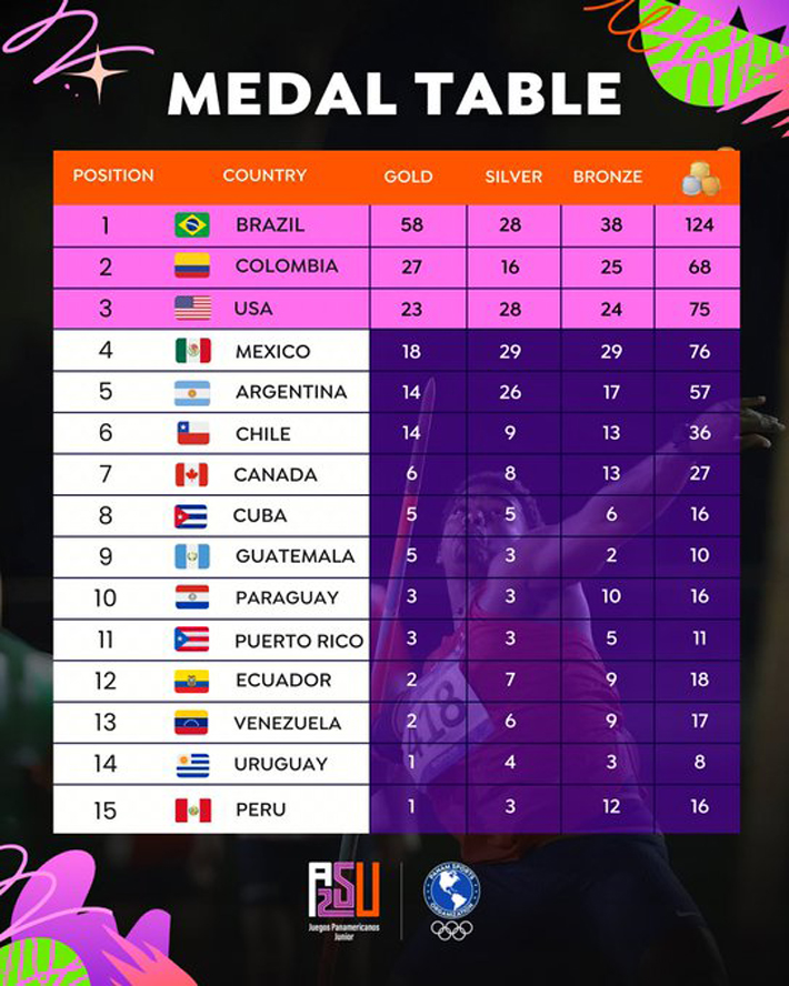 Chile en estos momentos totaliza 36 preseas. Son 14 de oro, nueve de plata y 13 de bronce. Está en el sexto puesto del medallero.