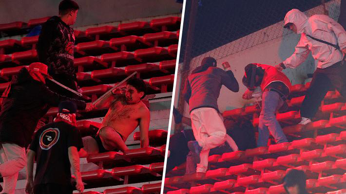 La turba atacó salvajemente a los chilenos. Con puñetazos y objetos contundentes. Los golpearon, los desnudaron. Una persona, al verse desesperada, se subió a la reja y lamentablemente terminó cayendo al vacío desde una altura considerable. No se sabe cómo está.