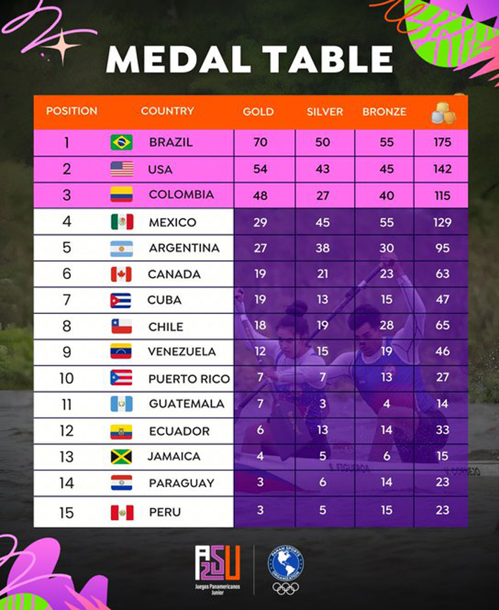 En total, la delegación nacional sumó 65 preseas en la capital paraguaya. Dieciocho de oro, 19 de plata y 28 de bronce. Terminó en el octavo lugar del medallero.
