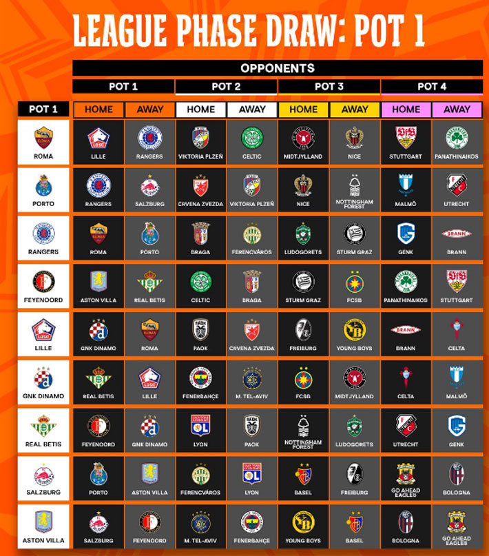 Betis enfrentará al Feyenoord (casa), Dinamo de Zagreb (visita), Lyon (casa), PAOK (visita), Nottingham Forest (casa), Ludogorets (visita), Utrecht (casa) y Genk (visita).