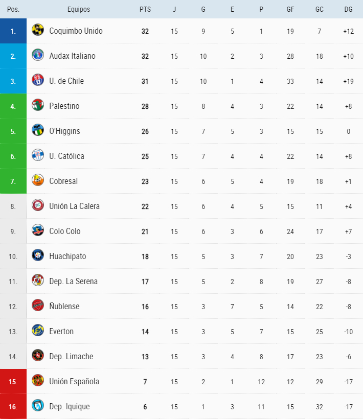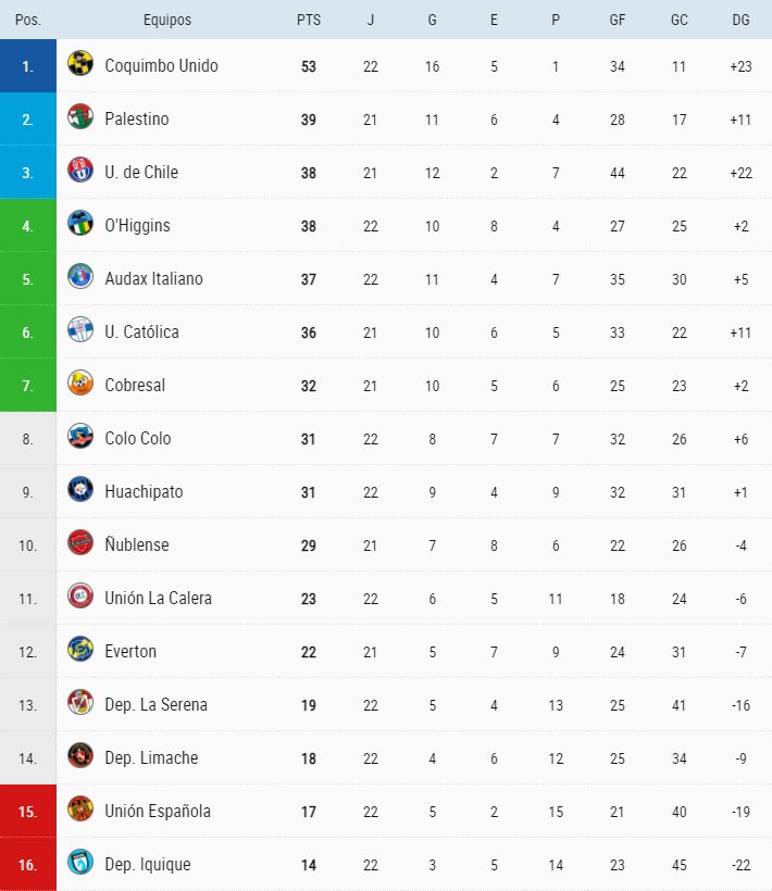Hoy se quedarían con el Chile 3 con 38 puntos, pero O'Higgins tiene las mismas unidades (está 4° por diferencia de goles) y mete presión. Luego viene Audax con 37 y se sumó la UC que llegó a 36.