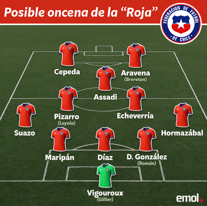 En ese elenco, cambió a Vigoroux por Thomas Gillier, a González por Iván Román, a Pizarro por Felipe Loyola. Luego, sacó a Assadi para poner a Darío Osorio abriéndolo por derecha y Ben Brereton reemplazó a Aravena como el "9".
