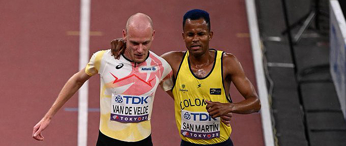 La tercera serie clasificatoria de los 3.000 metros obstáculos del Mundial de atletismo de Tokio dejó un bonito gesto de compañerismo y juego limpio por parte del belga Tim Van de Velde, que acompañó en los últimos metros, ofreciendo su hombro, al colombiano Carlos San Martín, que llegó a la meta cojeando tras una caída.