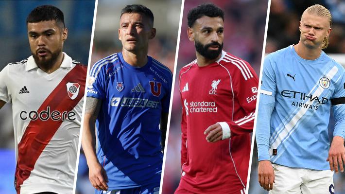 Paulo Díaz (River Plate), Charles Aránguiz (U. de Chile), Mohamed Salah (Liverpool) y Erling Haaland (Manchester City).