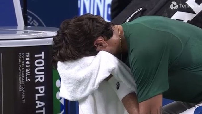 el número 9 del mundo no pudo aguantar las lágrimas. Al llegar al banco lloró por la nueva derrota en una final.