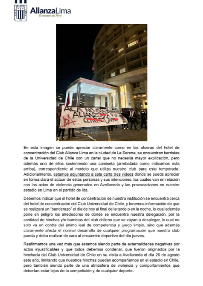 Polémica en la previa de la definición de la serie entre Universidad de Chile y Alianza Lima por los cuartos de final de la Copa Sudamericana.