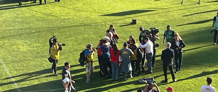 Fue empapado por los jugadores, se abrazó en zona mixta con Cristian Rudloff, presidente de la Federación, y luego siguió celebrando.