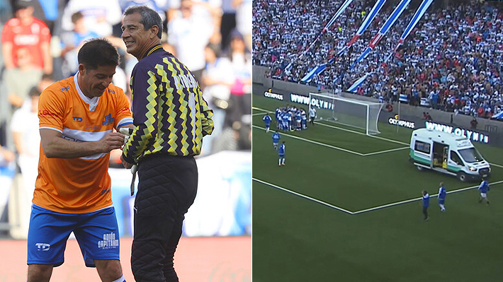 El ex portero Patricio Toledo, invitado por los cruzados, se desplomó en pleno partido y tuvo que ser asistido dentro de la cancha para luego salir en ambulancia de urgencia a la Clínica Universidad de Los Andes.