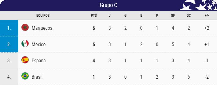 El sábado se definió el C, con México agarrando el segundo cupo, tras el líder Marruecos. Mientras que España timbró su lugar como mejor tercero.
