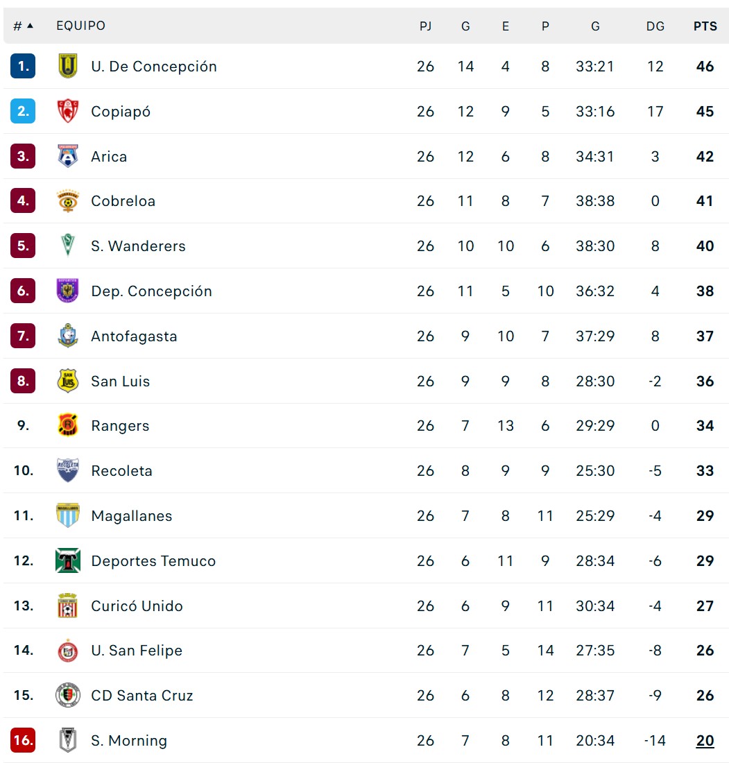 Y este domingo, el único que celebró fue Curicó Unido. Venció a Antofagasta y salió del fondo con 27 unidades, alejándose del colista Santiago Morning.